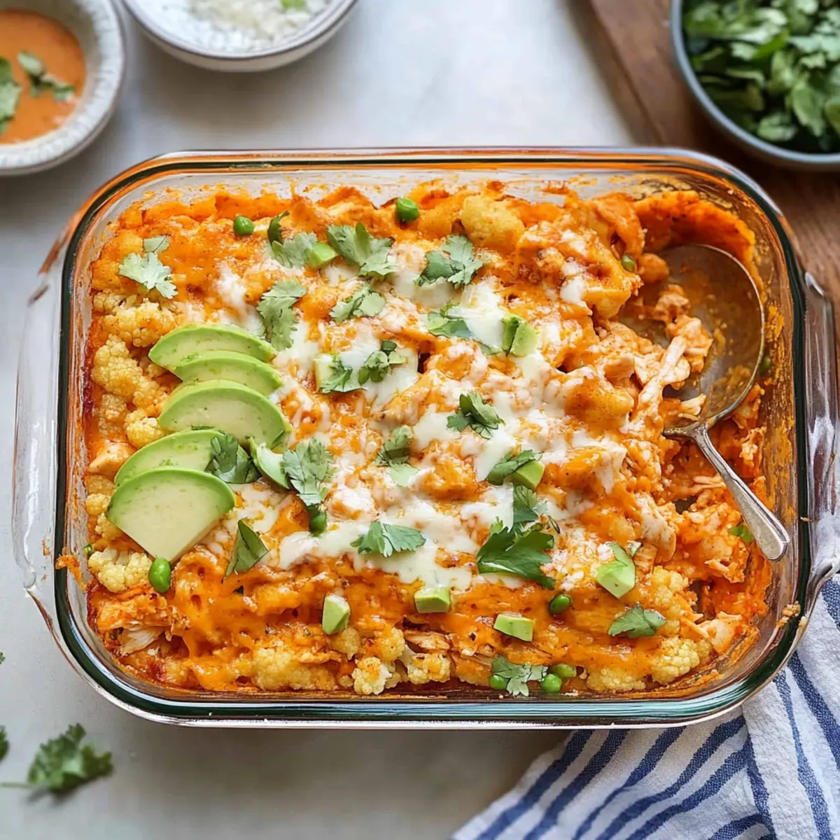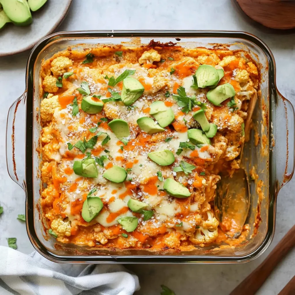 Irresistibly Cheesy Buffalo Ranch Chicken & Cauliflower Casserole